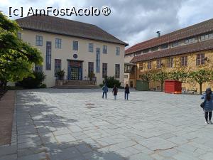 Ne-am oprit puțin în fața Intrării cunoscută sub numele de Poarta Bergenului, o replică a vechii porți a orașului Bergen și trecând prin ea am ajuns într-o curte interioară, cu un Restaurant, Cafenea și Magazine, cu Control Accesul în Muzeu. Turnicheții erau opriți, trecerile blocate cu bare metalice, era deschsă o singură trecere mai mare, pe care am intrat și noi. Nu știu, se mergea pe încredere sau, fiind la prima oră și muzeul abia deschis, personalul nu își ocupase posturile. Am primit fiecare câte o hartă, ghid ușor de urmat.