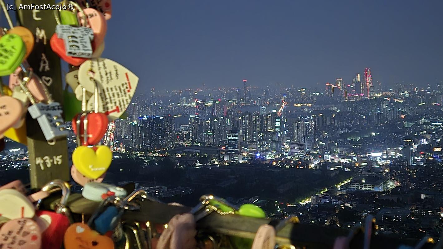 La intoarcerea din Suwon, am mers la hotel unde ne-am odihnit putin picioarele, ne-am luat cate un hanorac si o geaca (pe care chiar le-am folosit) si ne-am indreptat catre simbolul Seulului, turnul de comunicatii si observare N, situat pe Muntele Namsan. Acesta gazduieste diverse evenimente si festivaluri pe tot parcursul anului, cum ar fi Festivalul artificiilor si Festivalul bradului de Craciun.