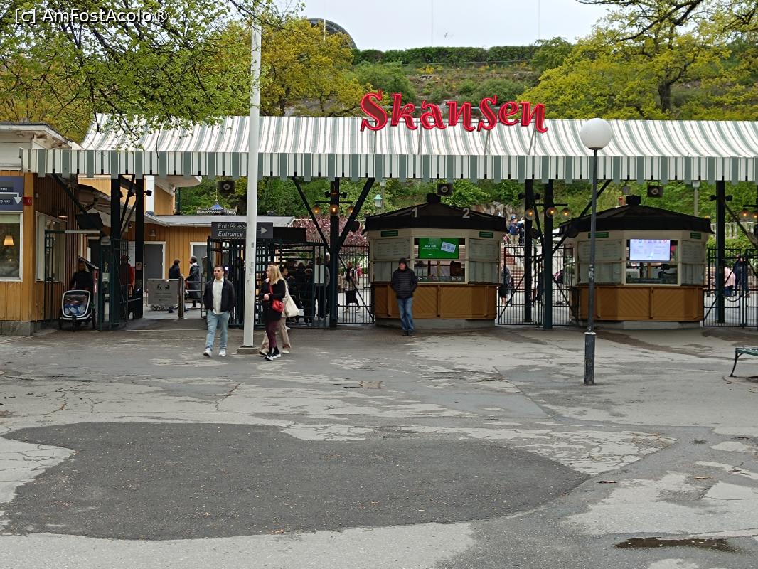 Muzeul se află în Strada „Djurgårdsslätten - Câmpia din Parcul animalelor” 49 unde se află și Intrarea Principală. Există Casă de bilete, un bilet pentru seniori costă 200 SEK, circa 19 euro dar asigură acces și la Centrul de Științe al Mării Baltice și la Micul (Lill) Skansen, parcul pentru copii. Când Am Fost Acolo Muzeul putea fi vizitat între orele 10 și 17, pe skansen.se/en, site-ul muzeului sunt prezentate programul de vizitare, costurile pentru diferitele categorii de vizitatori și alte informații. În Strada Hazeliusbacken - Dealul Hazelius 1 se află altă intrare Intrarea Hazelius. Aici am mers noi, veneam de la Muzeul Vasa, fiind întâmpinați de fondatorul muzeelor, cunoscutul profesor, folklorist Artur Hazelius Bust din bronz. Am cumpărat bilete și am intrat în muzeu. Încă ploua mocănește, era cam friguț pentru luna mai, am hotărât că nu puteam rata o vizită aici.