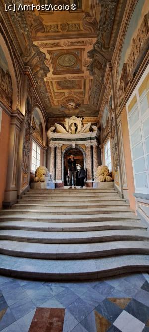 La parter aveam să revenim la finalul vizitei, însă parcursul vizitei ne-a condus la etaj unde se găsesc Saloanele Oficiale. Am urcat la etaj pe marea scară, după care am urmărit parcursul turistic indicat de săgeți.