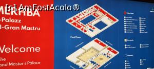 Am ales să vizităm Palatul Marilor Maeștri în cea de-a doua zi a minivacanței noastre, destul de devreme. Se puteau cumpăra bilete și la fața locului, doar cu cardul. Noi le-am prezentat pe ale noastre, la intrarea principală, cea care dă în Piața Sf. Gheorghe, apoi am fost invitați să intrăm. Spațiile vizitabile sunt dispuse pe două niveluri: parter și etaj, acest lucru observându-l din prima clipă în care am văzut harta arealului, ba chiar am și luat una tipărită, tip pliant. Persoanele care au ceva mai mult bagaj decât o gentuță mică de umăr, sunt invitate să și le depoziteze în spațiile dedicate.