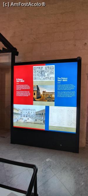 Prima dată am nimerit într-o sală circulară unde am fost introduși în istoria Maltei prin afișaje luminoase, fotografii prețioase, filmulețe menite să familiarizeze în mod gentil turistul cu tot ce ține de povestea malteză, lucru foarte educativ. Am văzut inclusiv o machetă a palatului, ceea mi s-a părut foarte edificator.