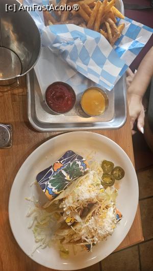 Ne am comandatfirește tacos pentru că era la ofertă și era surprinzător de ieftin plus o porție de cartofi prăjiți... A fost simplu, fără pretenții, dar exact ce aveam nevoie. Nu erau cei mai buni din viața mea, dar aveau gust de drum lung și foame adevărată.