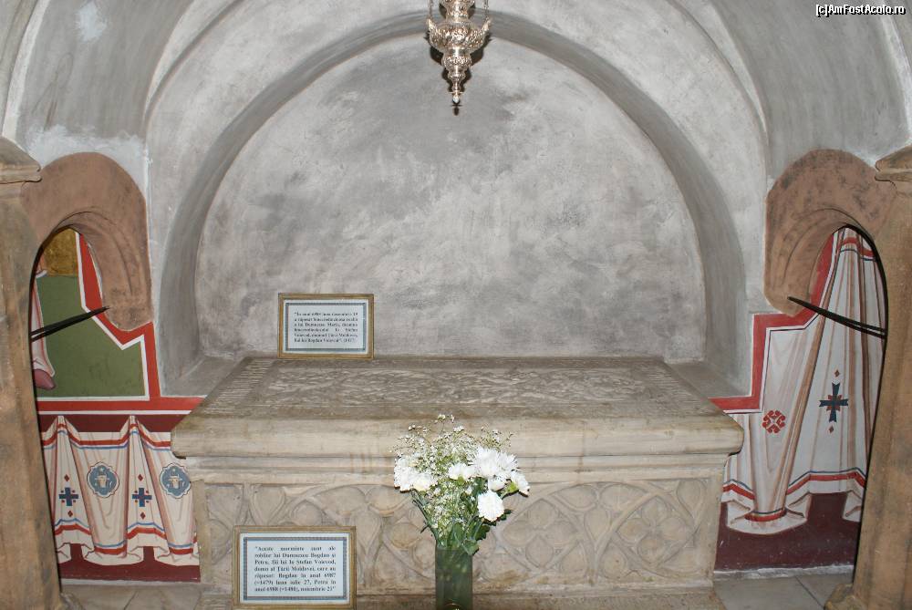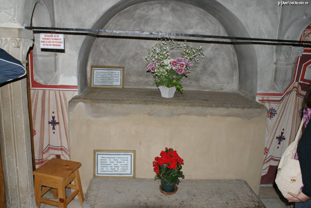 [P10] Inscripţiile spun că sus este mormântul Mariei, soţia lui Ştefan, iar jos cele ale fiilor lor, Bogdan şi Petru. Undeva este o greşeală, pentru că pe partea cealaltă (vezi foto anterioară) inscripţia arată că acolo este înmormântată Maria.