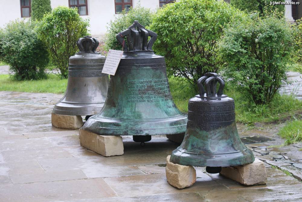 [P18] Cele trei clopote din faţa bisericii (latura de vest). Cel din mijloc este clopotul lui Ştefan cel Mare