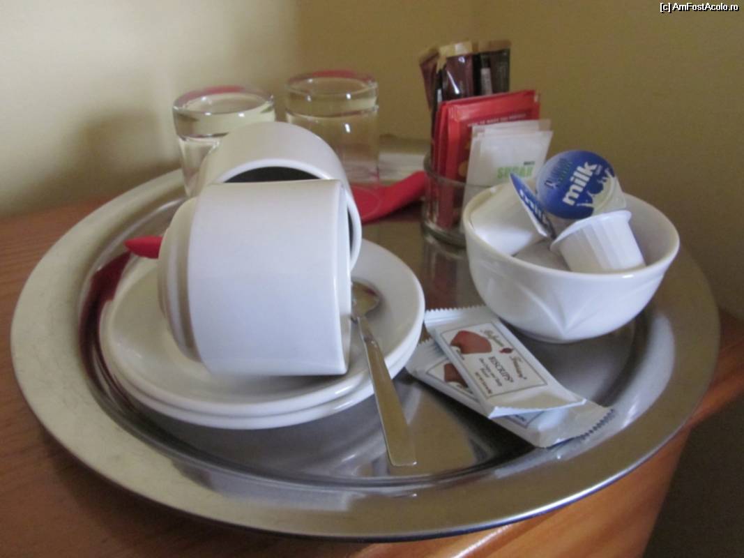 [P16] Inventarul de pe comodă 1: ceaiuri, coffee, biscuiţi, zahăr, lapte, etc