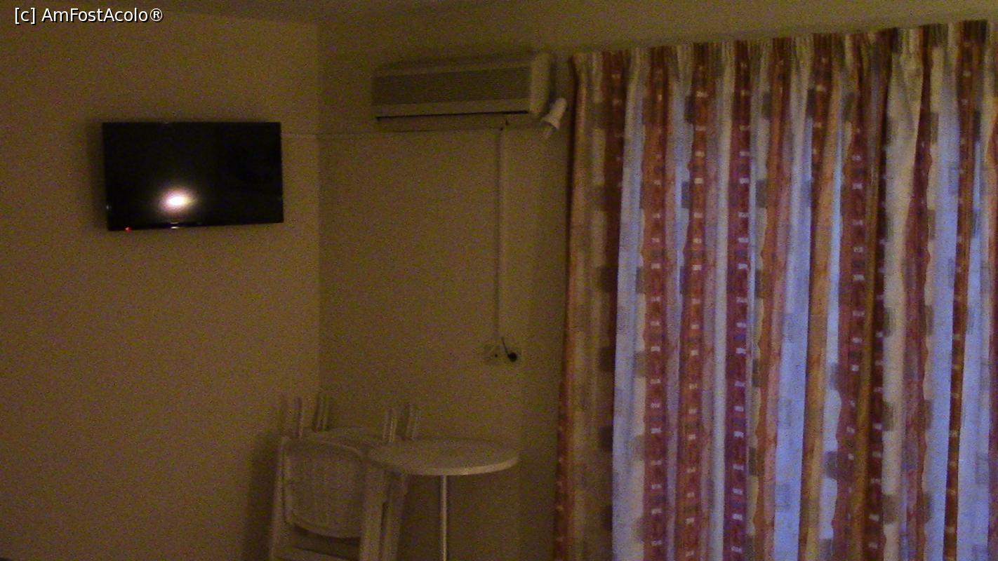[P11] Televizorul suspendat pe perete, aparatul de aer conditionat si masuta+doua scaune pentru balcon.
