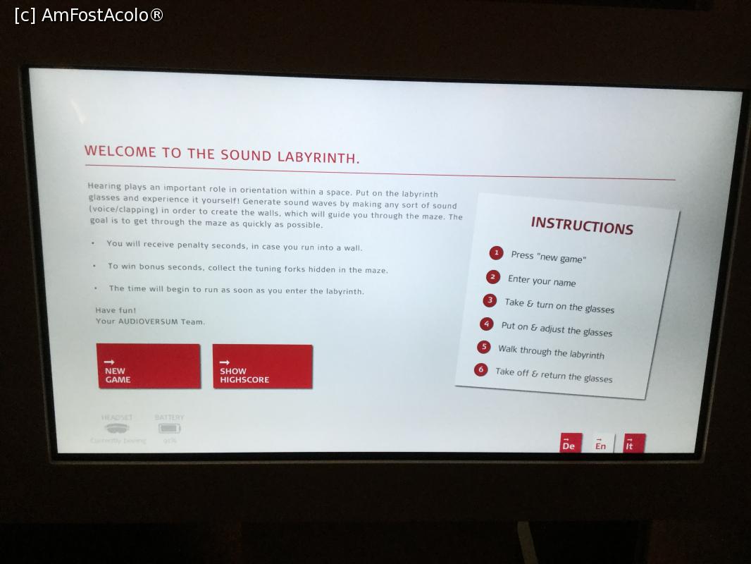 [P50] Audioversum - Din exterior parea un simplu covor, insa prin ochelari tu erai intr-un labirint (pereti de verdeata) si dupa sunet incercai sa iesi din labirint.