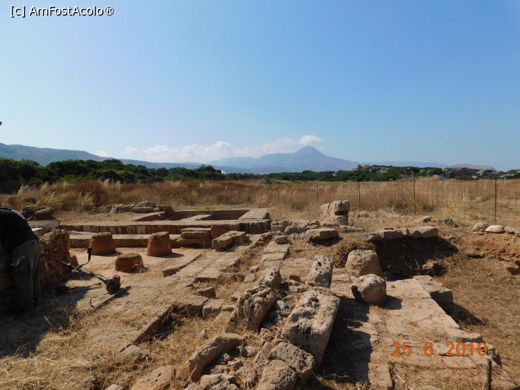 [P26] Falassarna: ruine de temple, în depărtate bisericuţa Agios Georgios