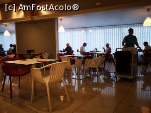 [P25] Vedere din sala de mic dejun; în dreapta zona de relaxare și apoi recepția, în stânga barul, în față lifturile