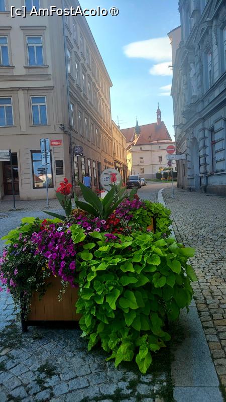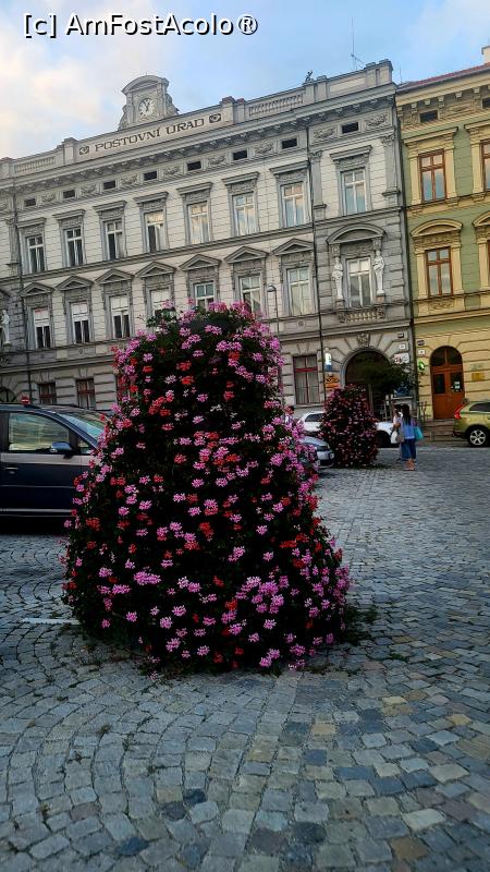 [P33] Aranjamente florale pe stradă și pe fundal Oficiul Poștal - Znojmo