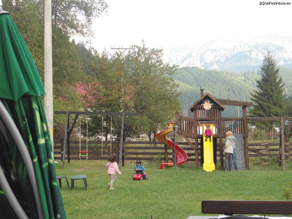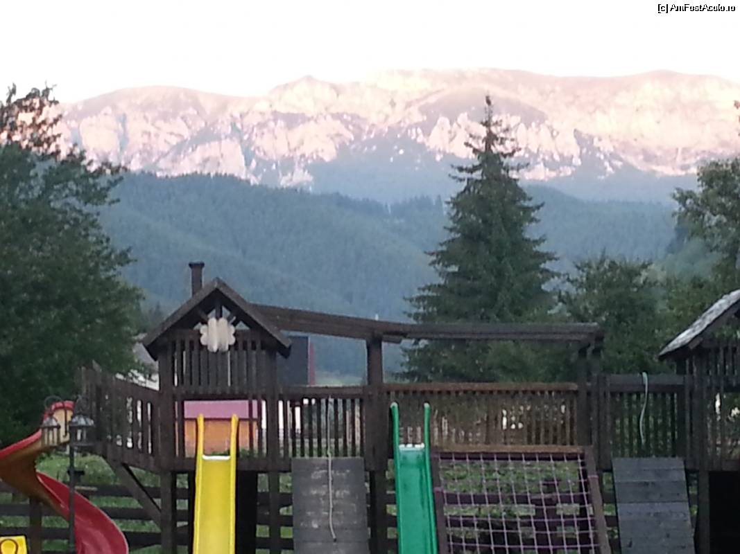 [P07] Vedere tot spre Muntii Bucegi din curtea pensiunii prinzand si o parte din locul de joaca