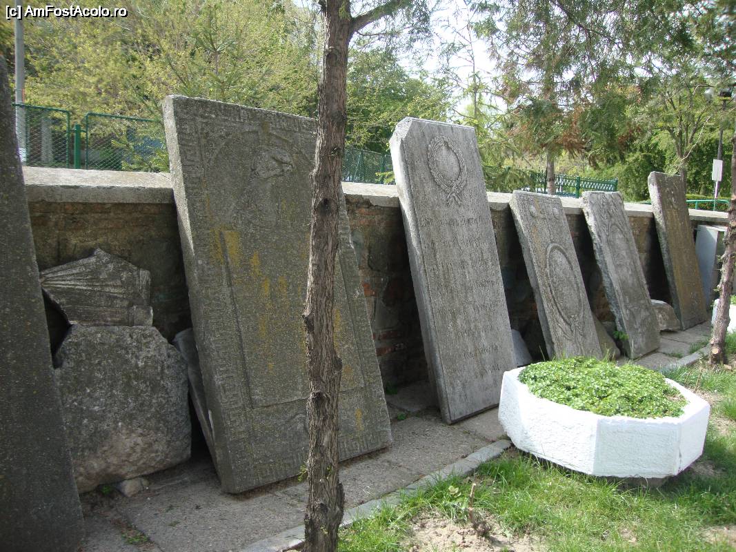 [P17] Pe lângă gard sunt înşiruite mai multe lespezi funerare vechi.