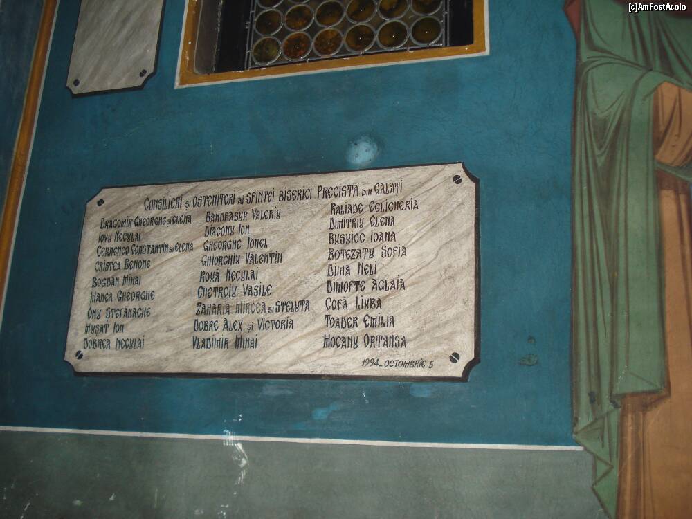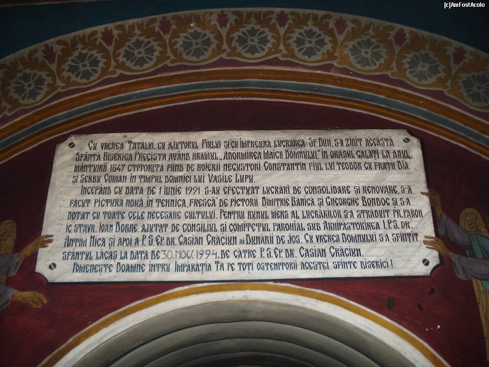 [P15] Galati - Biserica Sf.Precista - placa comemorativa ce indica cine si cand a ridicat biserica