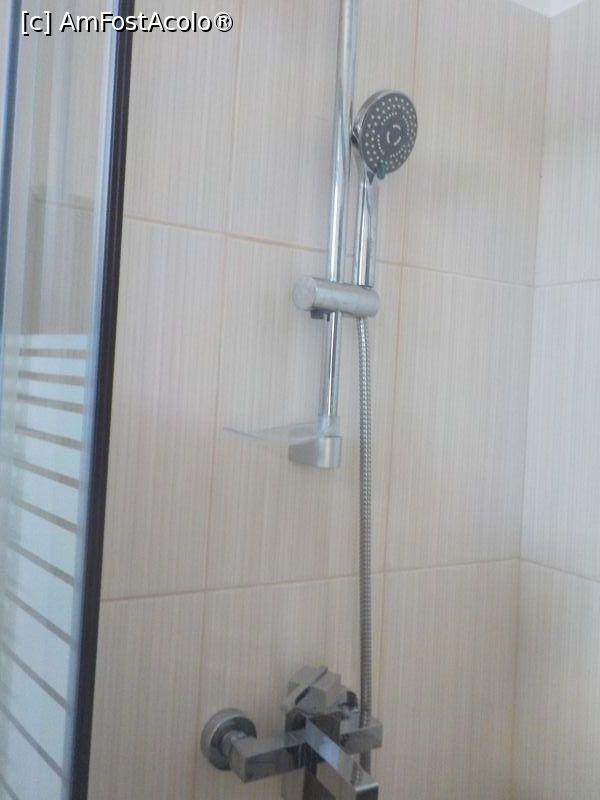 [P19] Dușul. Săpuniera e în stânga, la baza tijei pe care stă dușul.