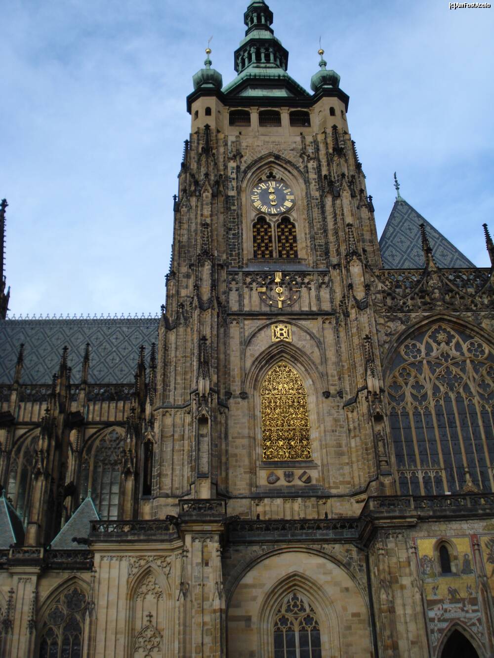 [P14] Praga - Castelul - Catedrala Sf.Vitrus , latura sudica, numita Poarta de Aur. Unul din ceasuri indica ora, celalalt minutele
