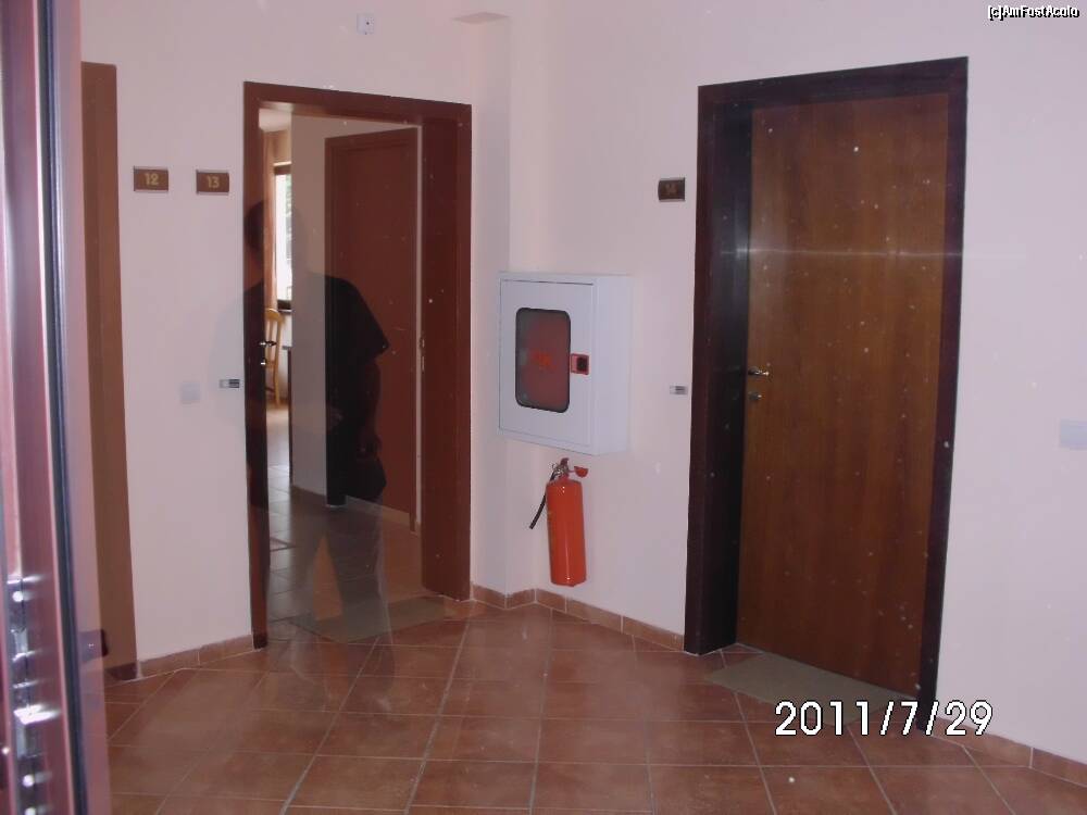 [P02] vedere din holul "blocului", nu am idee ce s-a intamplat darcred ca e reflectie in geam a sotului. Ideea e de a vedea cam cum era pe hol. Trei usi/3 apartamente. Cea care e deshisa e a noastra, cea din dreapta cred ca era cu u singura camera , iar in stanga cu 2 dormitoare.