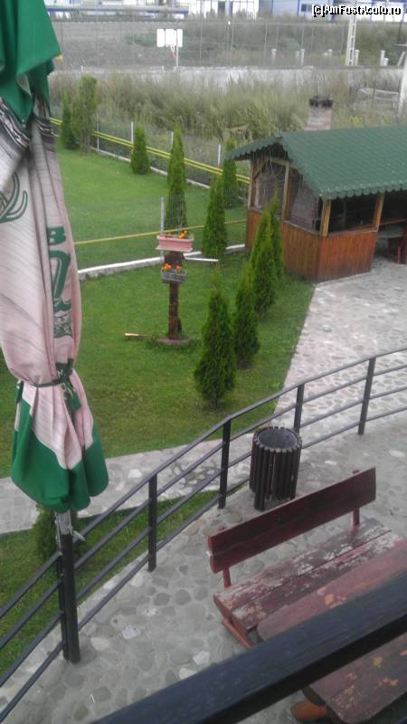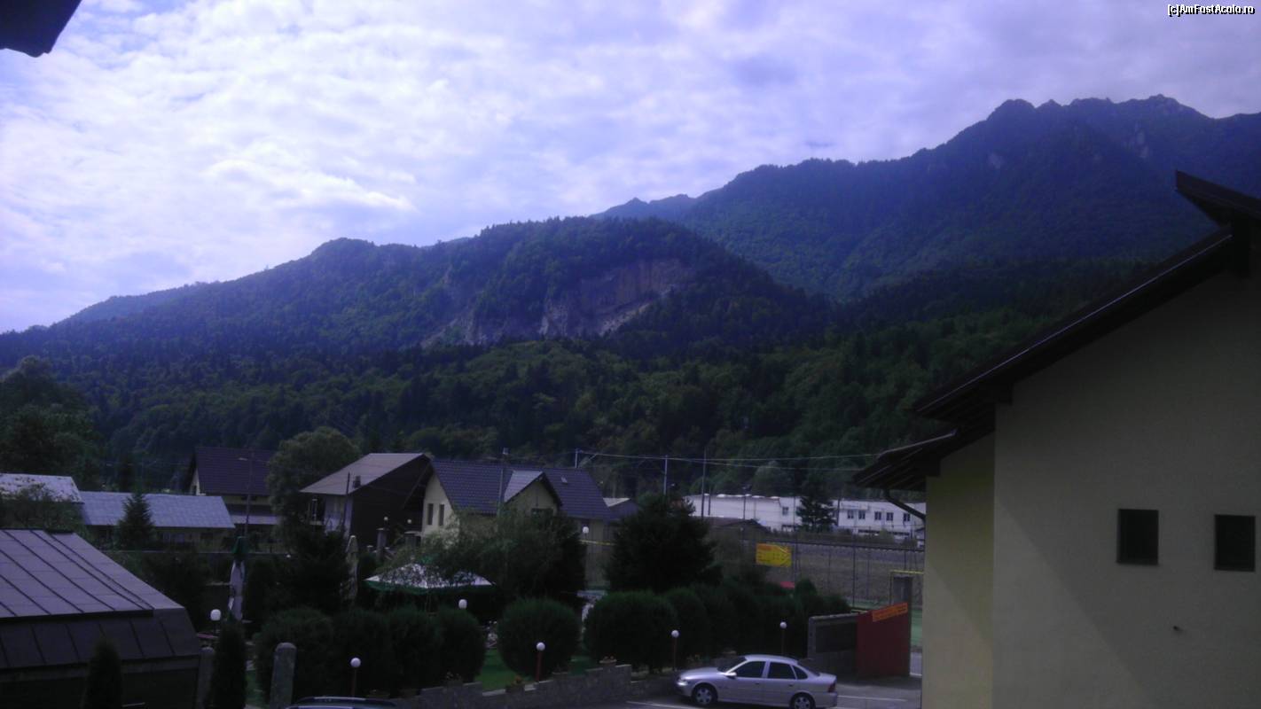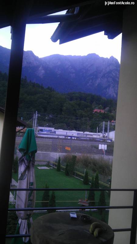 [P07] Din balcon se vede gradina si pe fundal se vad muntii