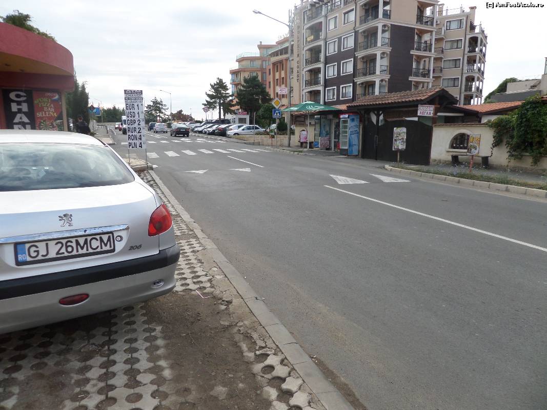 [P21] Trecerile de pietoni și parcarea, cu plată, a hotelului. În dreapta se văd porțile restaurantului de la care am auzit cântecul.