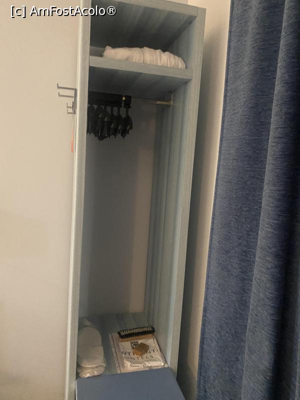 [P13] Hotel Continental Forum Sibiu - minunatul dulap de haine, cu doua carlige in exterior, si un raft pe care se gaseste doa un halat de baie, in schimb sunt 2 perechi de papuci.