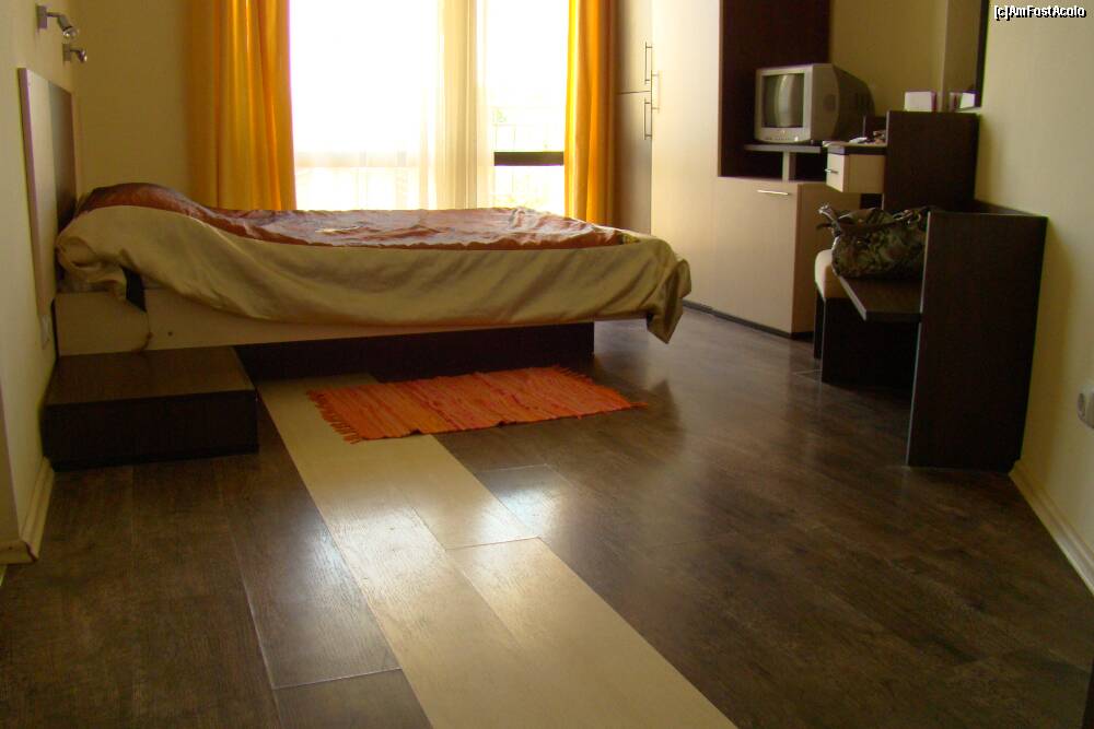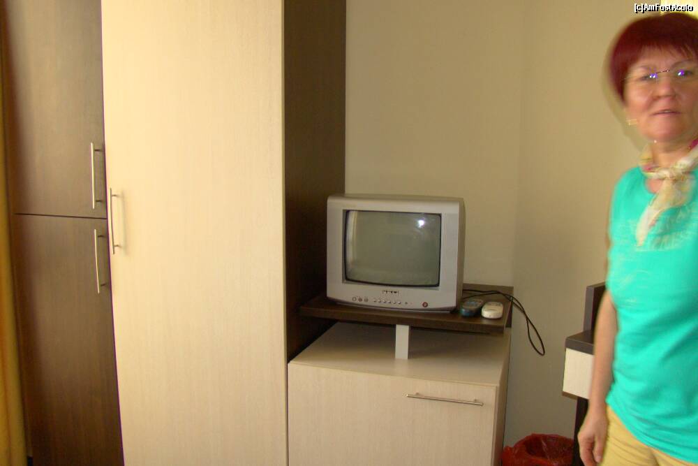 [P07] Dulapul de haine, televizorul si frugiderul completeaza dotarile camerei, mobilata bicolor.