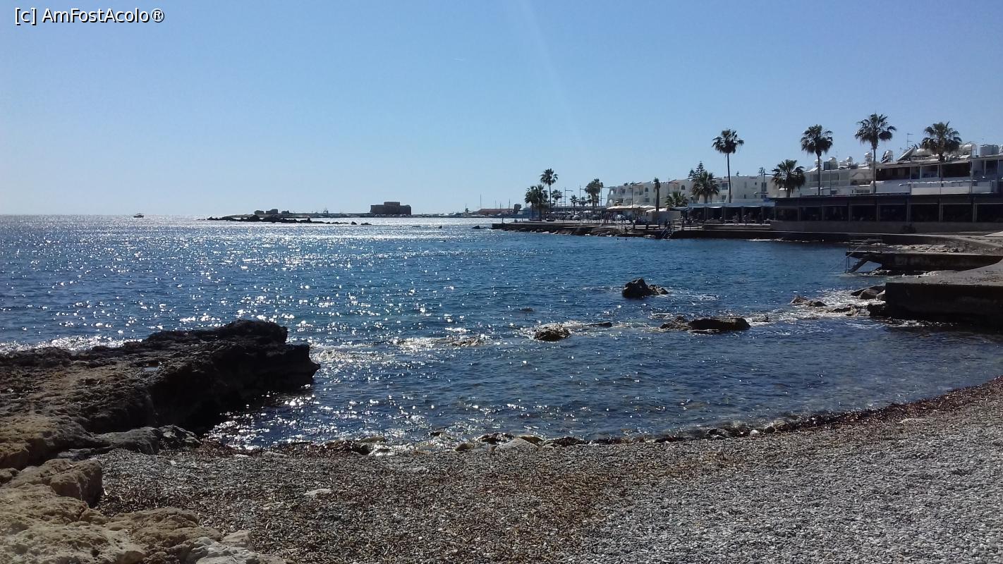 [P40] Ţărmul stâncos din Paphos, în faţă, în plan îndepărtat, castelul medieval