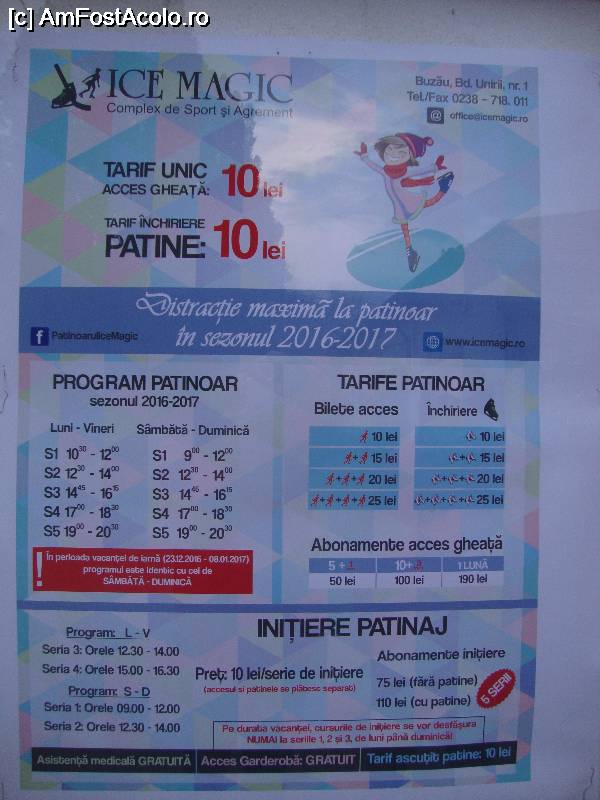 [P28] Patinoarul ”Ice Magic” - tarife și program pentru sezonul 2016-2017.