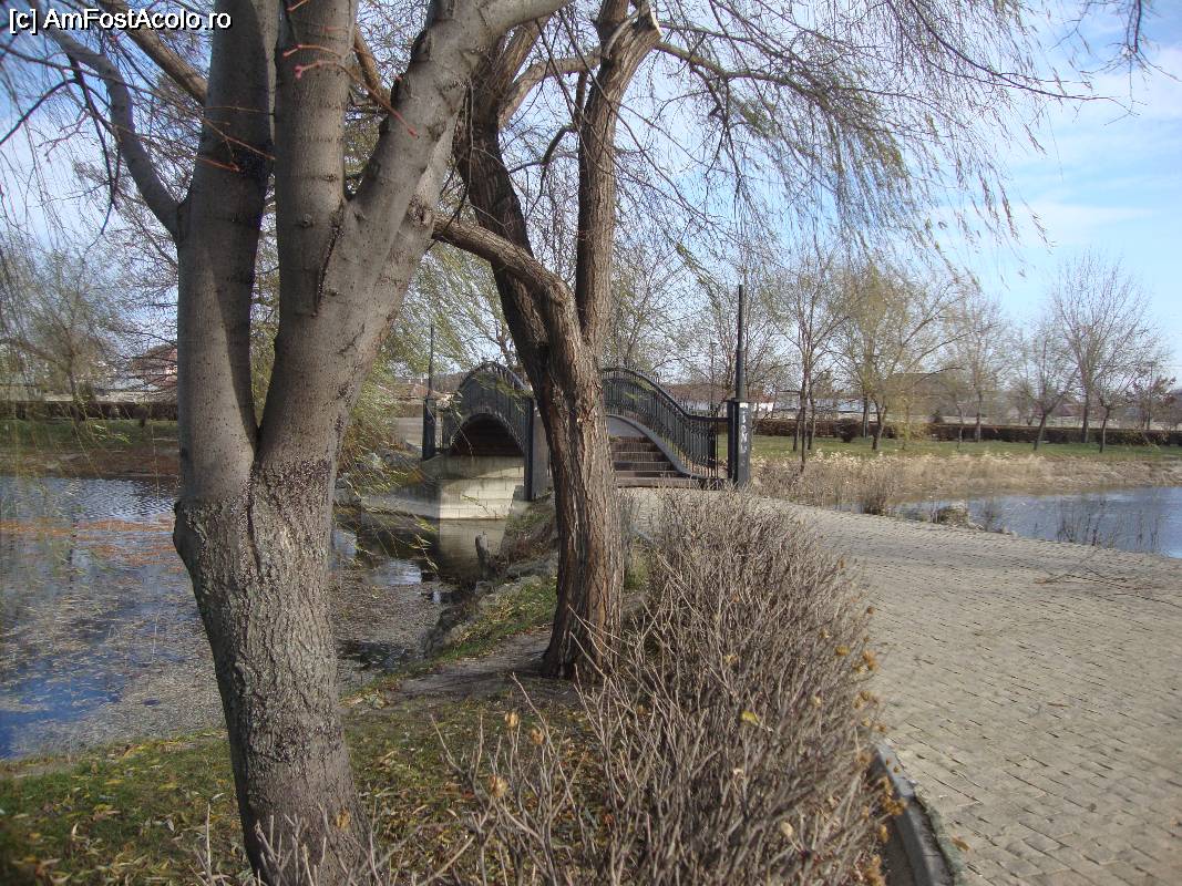 [P23] Lacul din parcul Marghiloman este traversat de un pod. Vara admirăm peștișorii de pe acest pod.