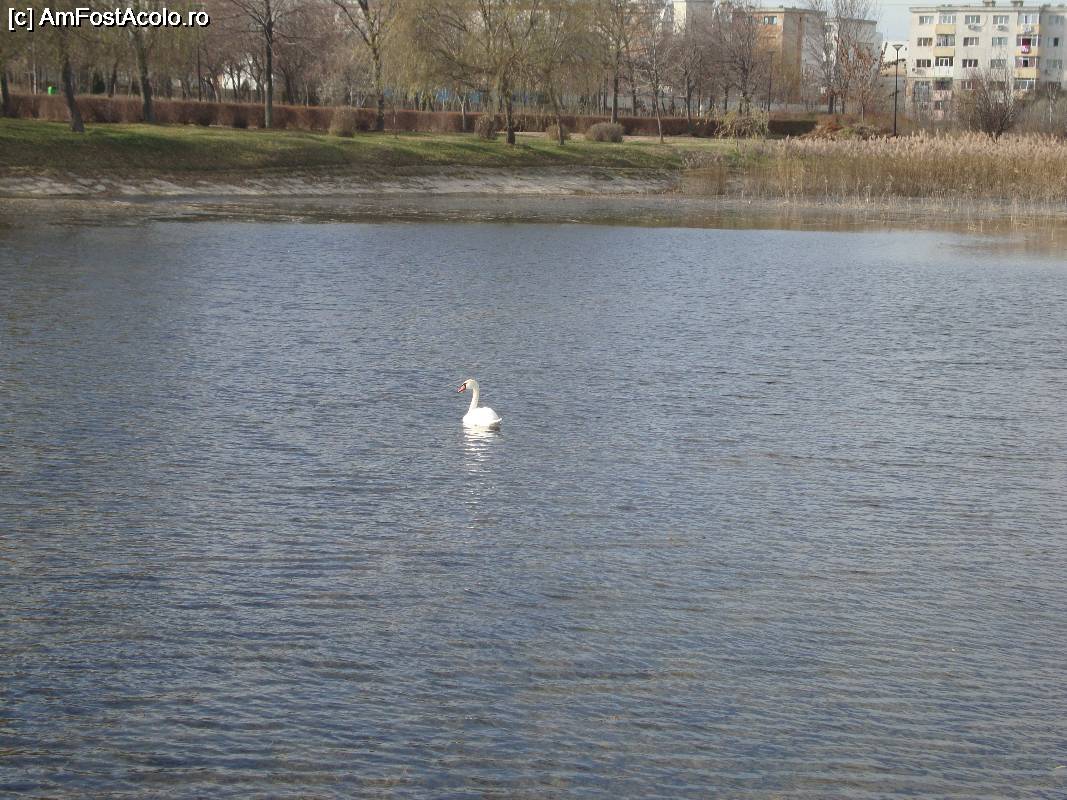 [P25] O lebădă albă înoată grațios pe lacul din parcul Marghiloman.