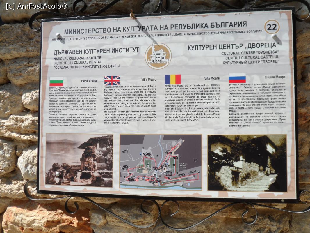 [P07] Panouri informative afişate la toate punctele de interes turistic din complexul de clădiri ce constituia domeniul Reginei Maria, scrise în bulgară, engleză, română şi rusă Vedere spre mare din fosta grădină a Reginei Maria