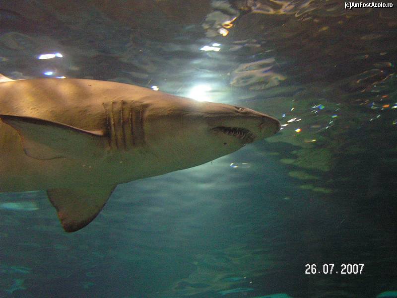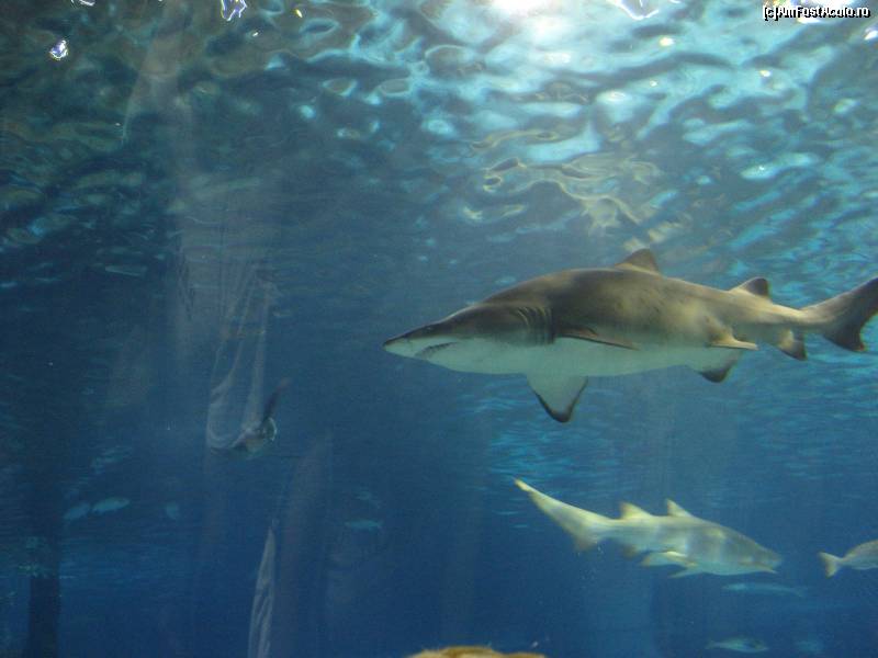 [P31] La acvariu rechinii se pot vedea foarte bine, trecand parca, pe langa tine...ne separa doar un gros perete de sticla