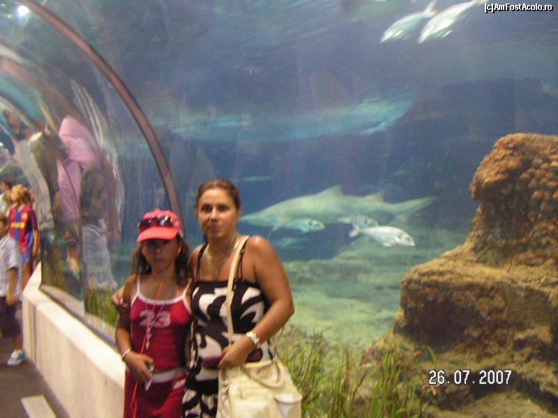 [P38] Acvariul din Barcelona, prin tunelul de sticla prin care trec turistii (si noi, pe acolo; poza este cam tulbure, dar am vrut sa prezint cum este...)