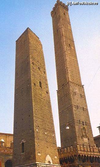 [P01] Torre Garisenda și Torre degli Asinelli. Foto este o scanare de pe o vedere.