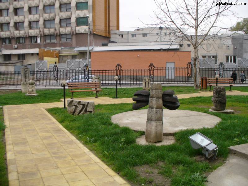 [P45] Centrul cultural Nicapetre - alte sculpturi in piatra, expuse in curtea cladirii