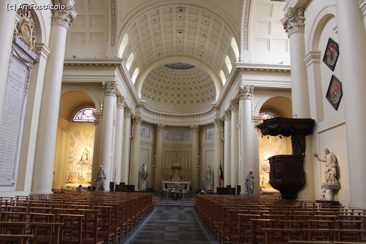 [P58] Bruxelles, Biserica Sf. Iacob de pe Coudenberg, Nava centrală cu Amvonul, în plan îndepărtat Altarul