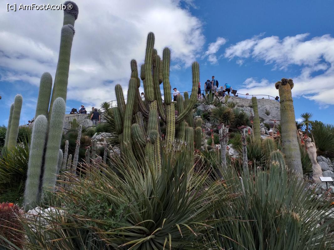 [P28] Cactuşi din Jardin Exotique d' Èze, se poate observa şi cea mai înaltă platformă pe care se află ruinele fostei fortăreţe medievale