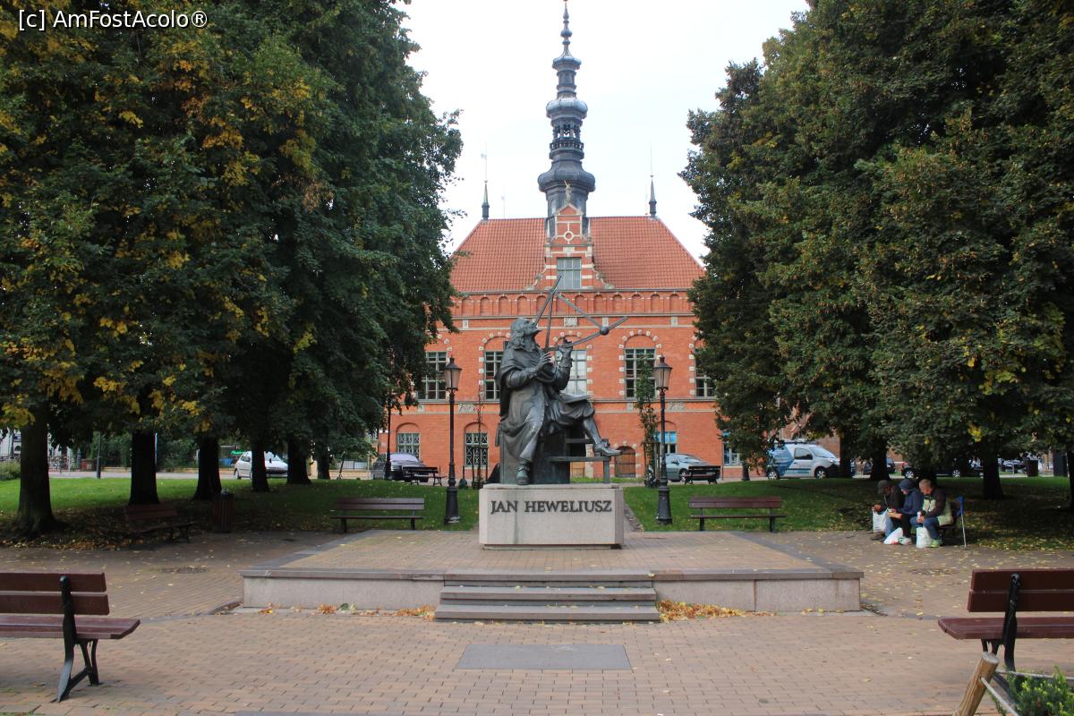 [P12] Gdańsk, Piața Jan Hevelius, cu Statuia acestuia, în fundal Ratusz Staromiejski - Vechea Primărie