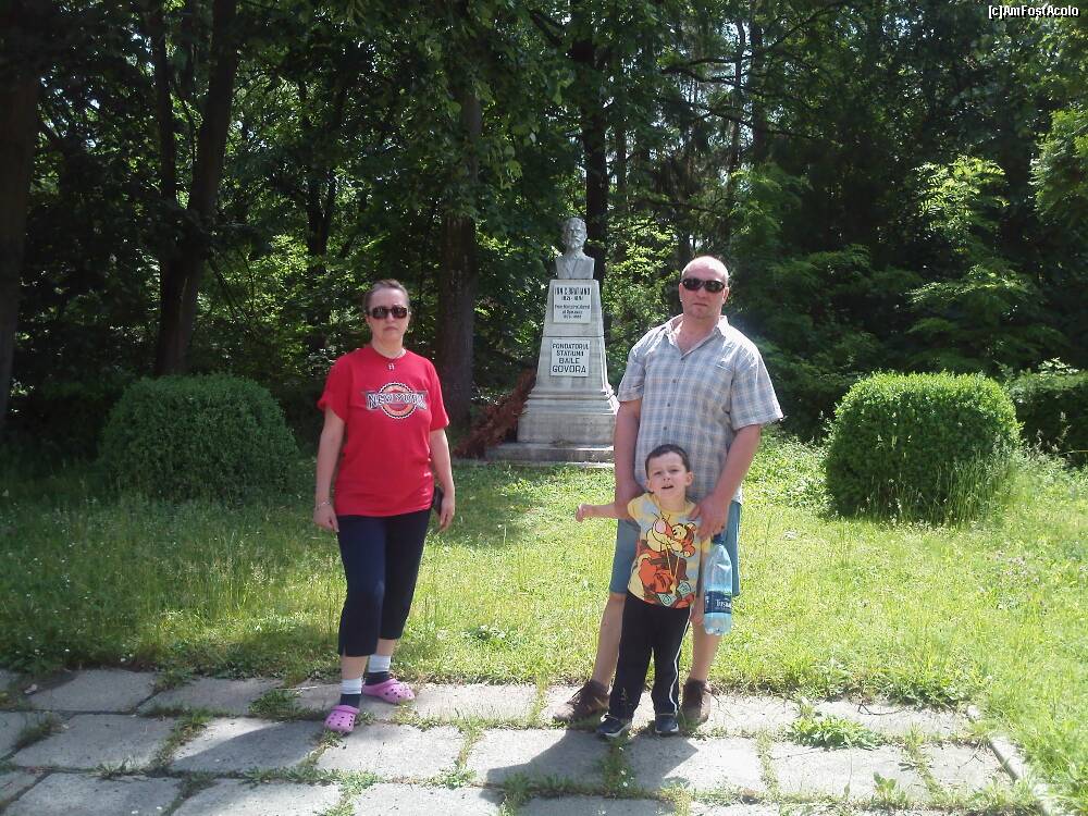 [P08] Imagine cu o parte din familie , alaturi de statuia fondatorului Baile Govora , I.C. Bratianu .