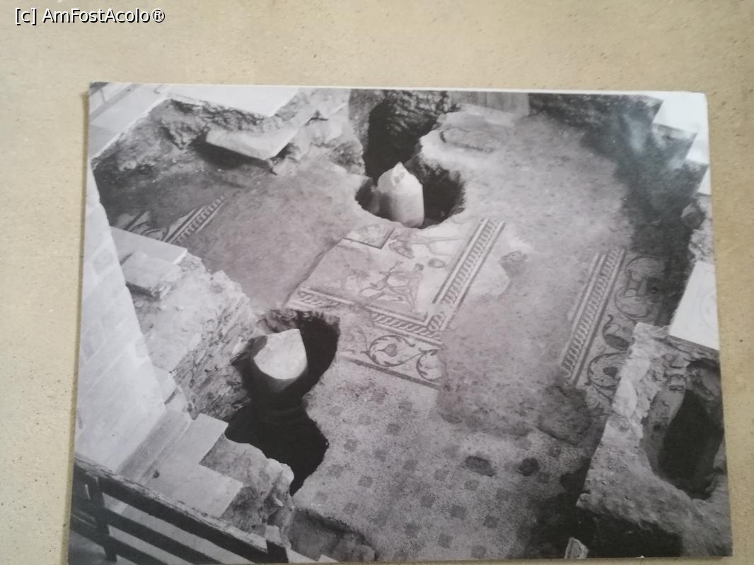 [P34] Biserica Ekatontapyliani; fotografie din timpul restaurării înfățișând mozaicul cu care era acoperită podeaua, expus azi la Muzeul Arheologic