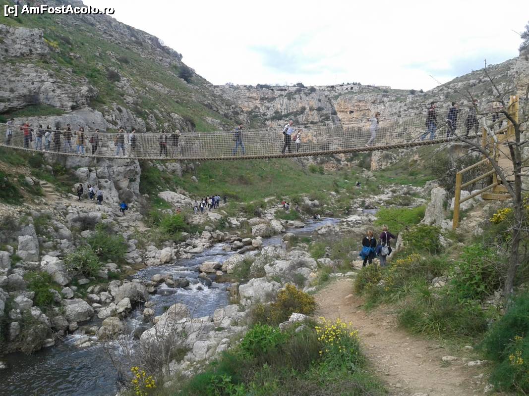 [P28] Podul de bambus peste Gravina care te duce pe versantul celălalt, la peșterile locuite din cele mai îndepărtate timpuri.