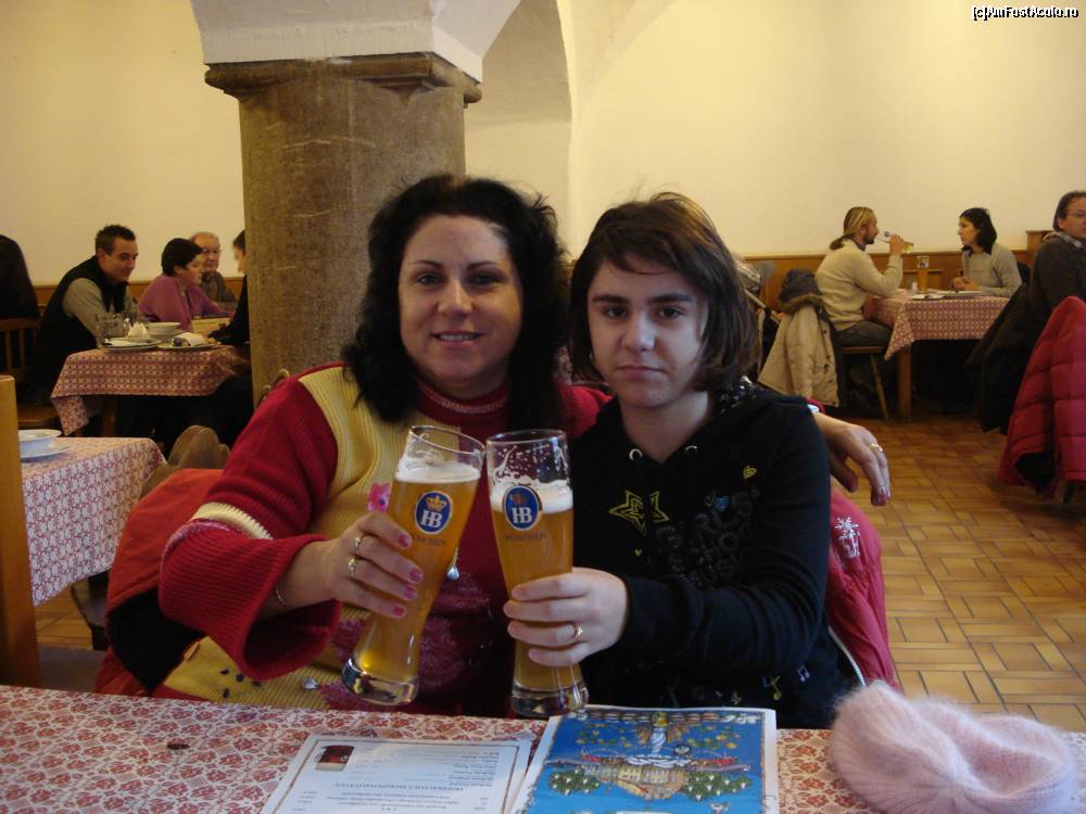 [P22] Eu cu "canistra" de bere in mana si fii-mea cu a lui tat-su la o poza la beraria Hofbrauhaus din Munchen