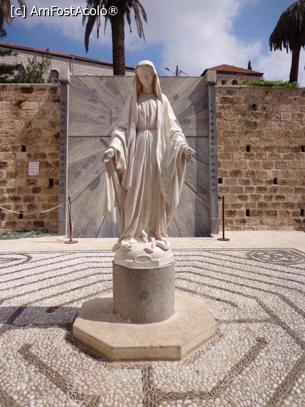 [P66] Nazaret, Biserica Buna Vestire: statuia Maicii Domnului la ieșirea din incinta ansamblului mănăstiresc Buna Vestire