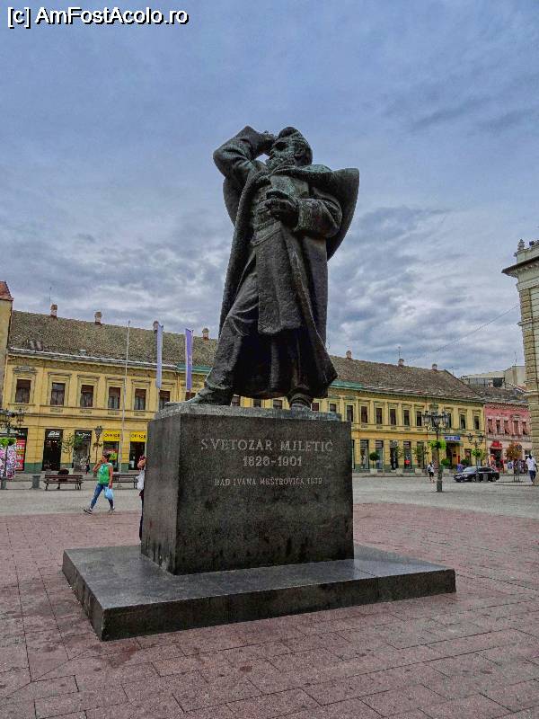 [P19] Novi Sad: statuia de bronz a lui Svetozar Miletić din Piața libertății (Trg. Slobode)