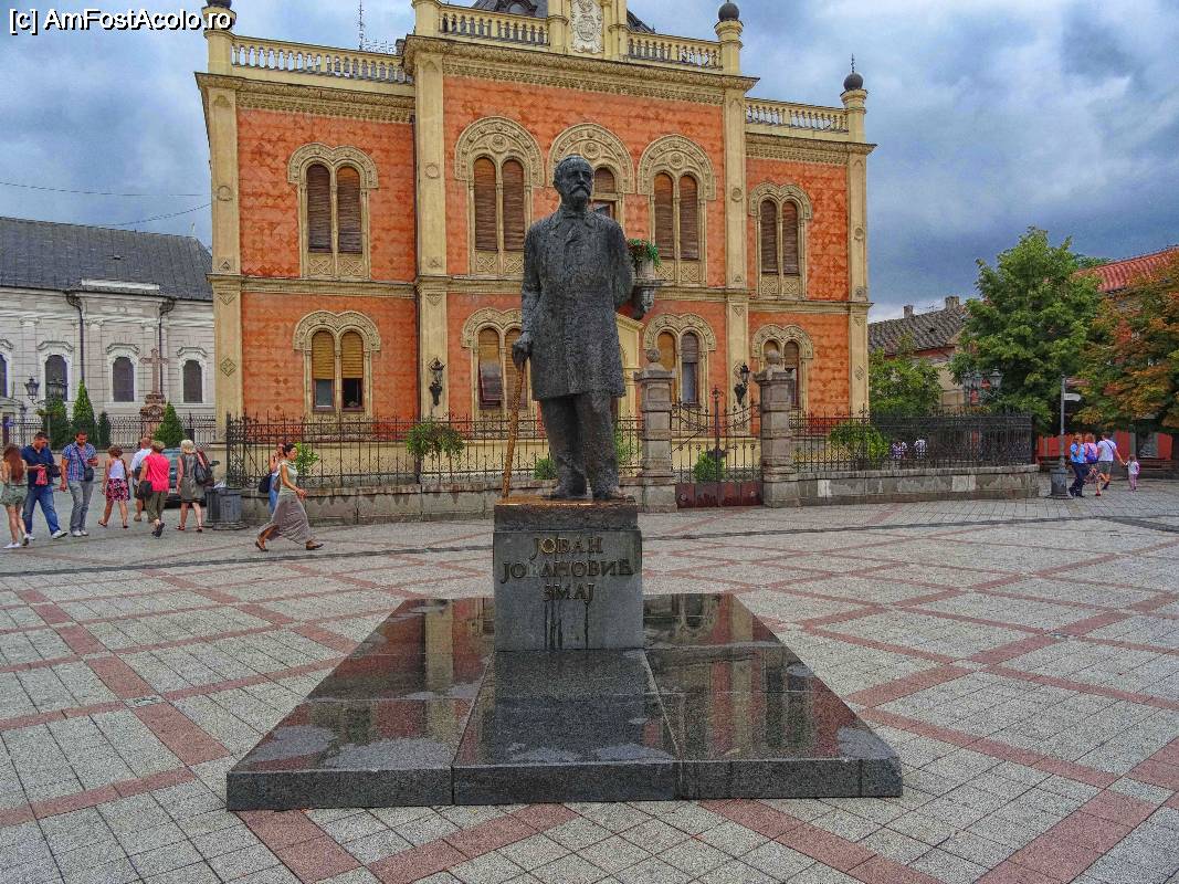[P36] Novi Sad: statuia poetului romantic Jovan Jovanovic Zmaj din fața Palatul Episcopal (Vladičanski dvor)