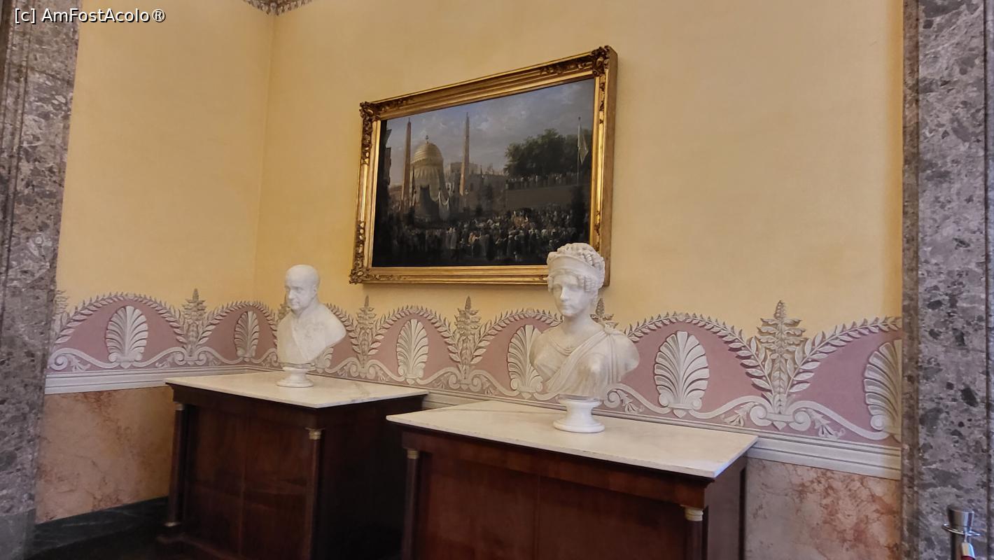 [P33] Lucrarile de decorare ale camerei au inceput din anii dominatiei franceze, cu realizarea unei fresce de tavan infatisandu-l pe zeul Pallas rasplatind stiintele si artele.