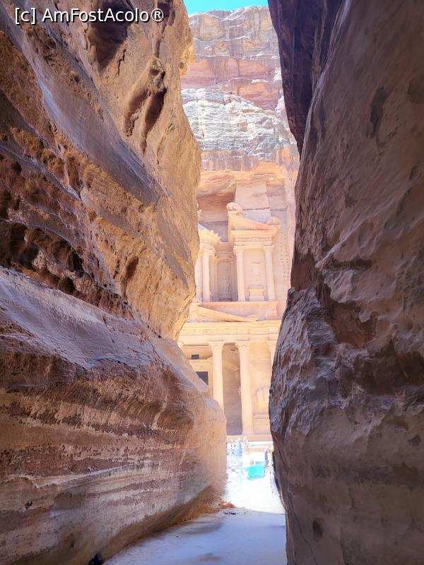 [P13] Cea care ne taie respiratia este insa Trezoreria (Al Khazneh), care apare brusc printr-o crapatura vizibila cu doar putin timp inainte de a ajunge acolo, datorita drumului serpuit.