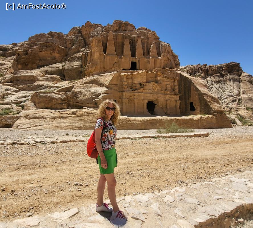 [P04] Mormantul Obelisc, sculptat de nabateeni în secolul I d.Hr. are in partea superioara 4 piramide, precum si o nisa cu o statuie in basorelief care este o reprezentare simbolica a celor cinci ingropati acolo.