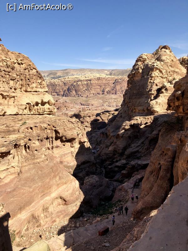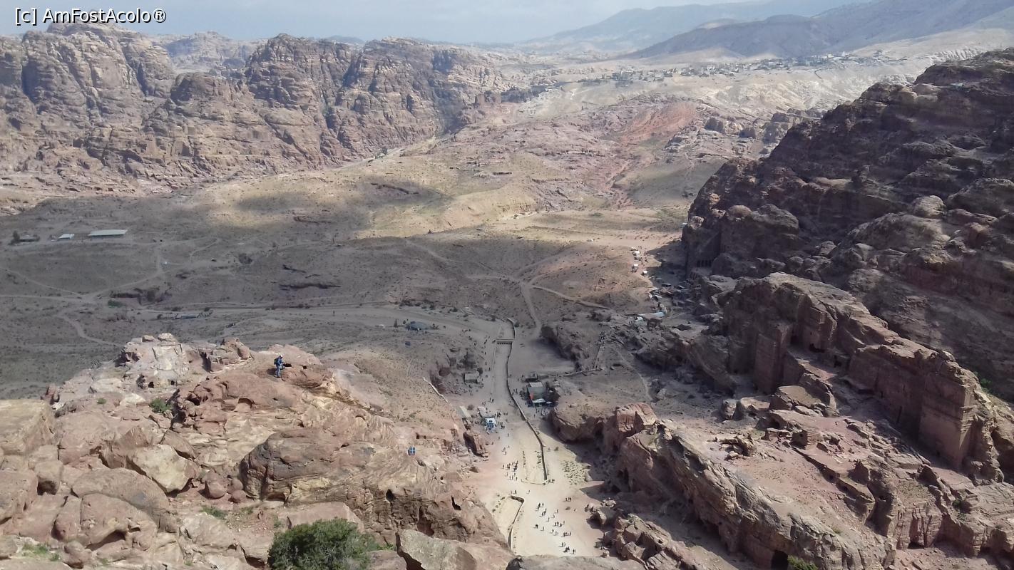[P03] Urcând pe poteca spre Înaltul Loc al Sacrificiului privim înapoi către traseul principal din Petra