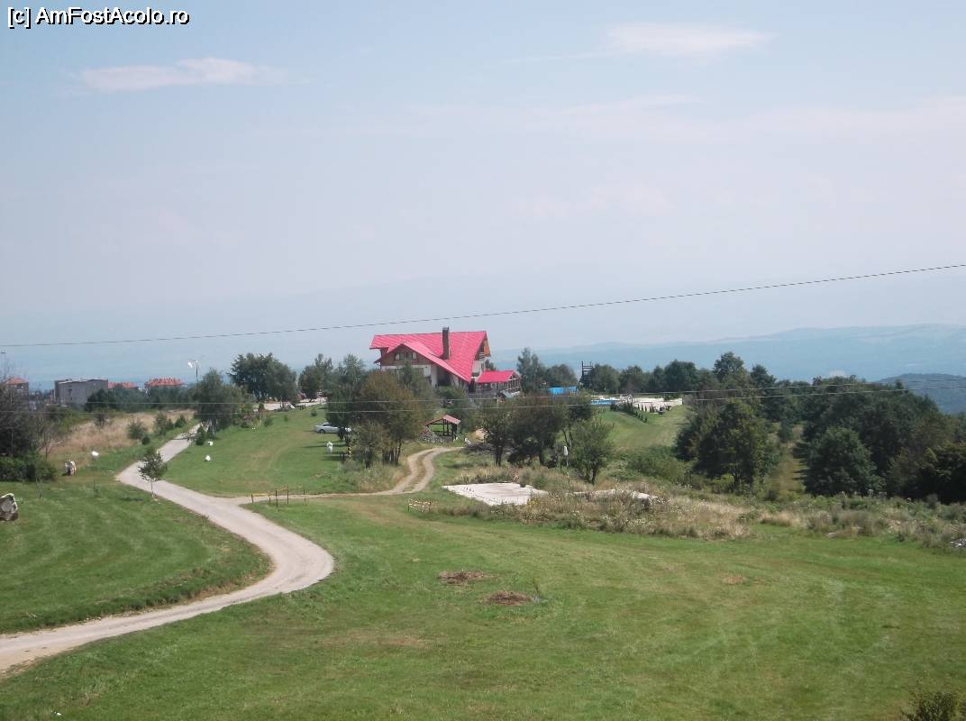 [P47] Vedere asupra Ținutului Pădurenilor din Observatorul Măstăcăneț. În față Pensiunea Panorama, cam singura din zonă, plină ochi la data la care am fost noi.