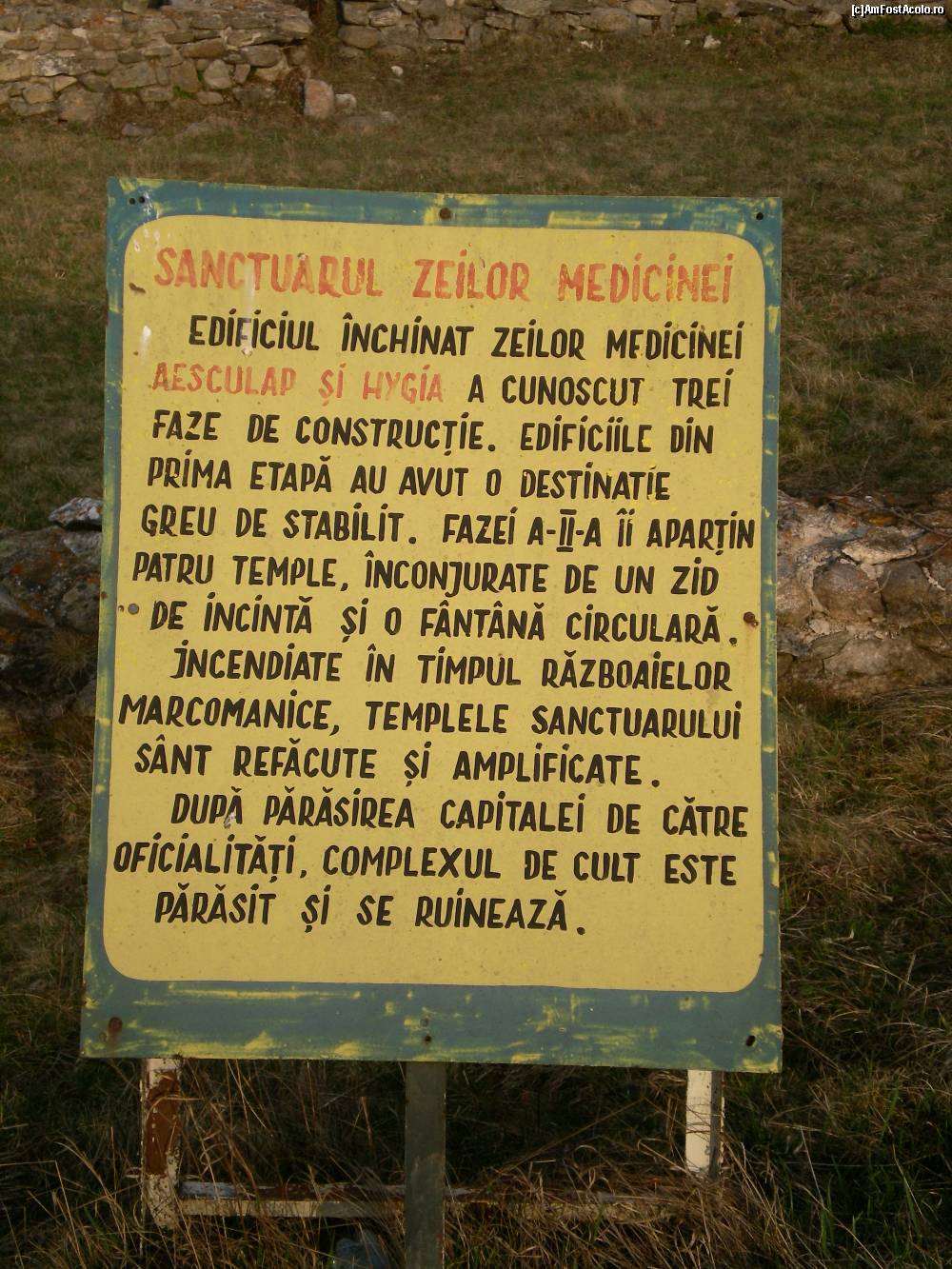 [P03] Sarmisegetuza Ulpia Traiana - placheta "descriptiva" de la sanctuarul lui Aesculap si Hygia.